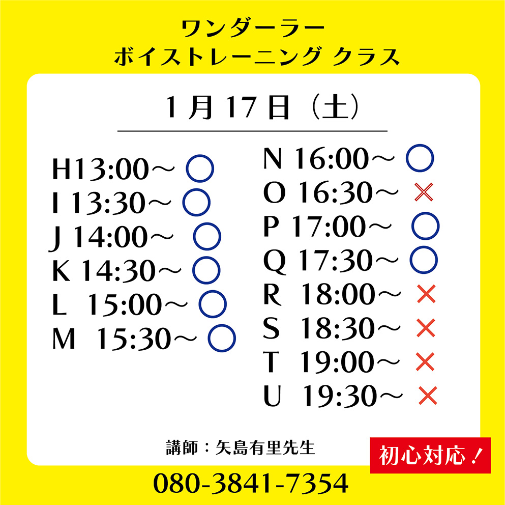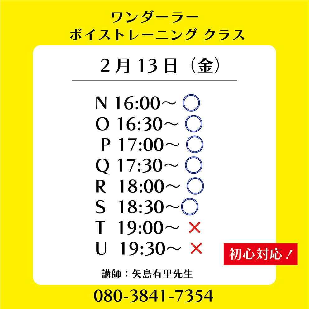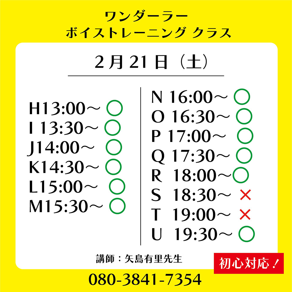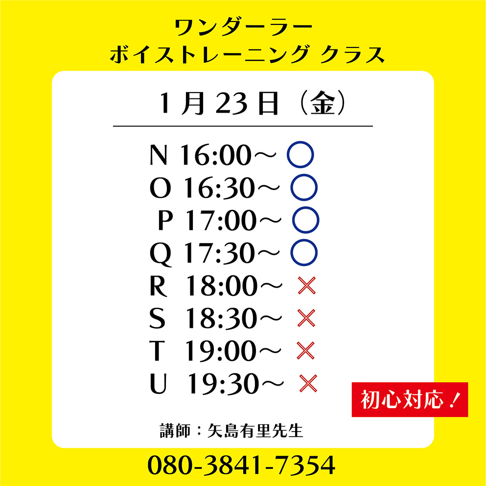 | ワンダーラー 個人ボーカルレッスン カレンダー |