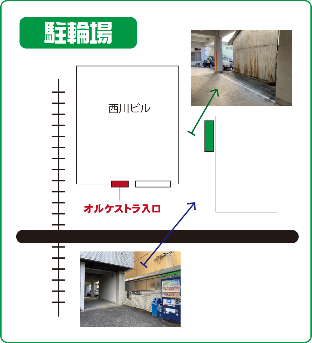 | 【最寄り駅】 近鉄京都線「新田辺駅」西口を出て徒歩2分 JR学研都市線「京田辺駅」東口を出て徒歩6分 【駐車場】 西川ビルには、駐車スペースがありません。 近隣のコインパーキングをご利用ください。 【駐輪場】 *指定の場所以外に置かないでください。 ![]() |